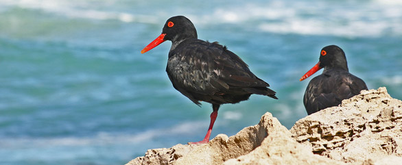 HELSVARTA STRANDSKATOR VID DE HOOPS NATURRESERVAT I SYDAFRIKA