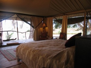 LARSENS TENTED CAMP är legendarisk i Samburu National Park. Campen har 20 separata tält, ett tält för restaurang och en liten pool med spa. Läget är mycket naturskönt med utsikt dels över floden Ewaso Ng’iro och dels över torrsavannen åt andra hållet.
